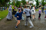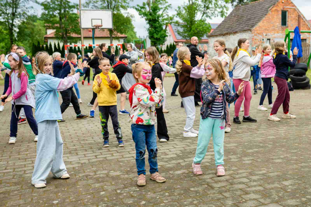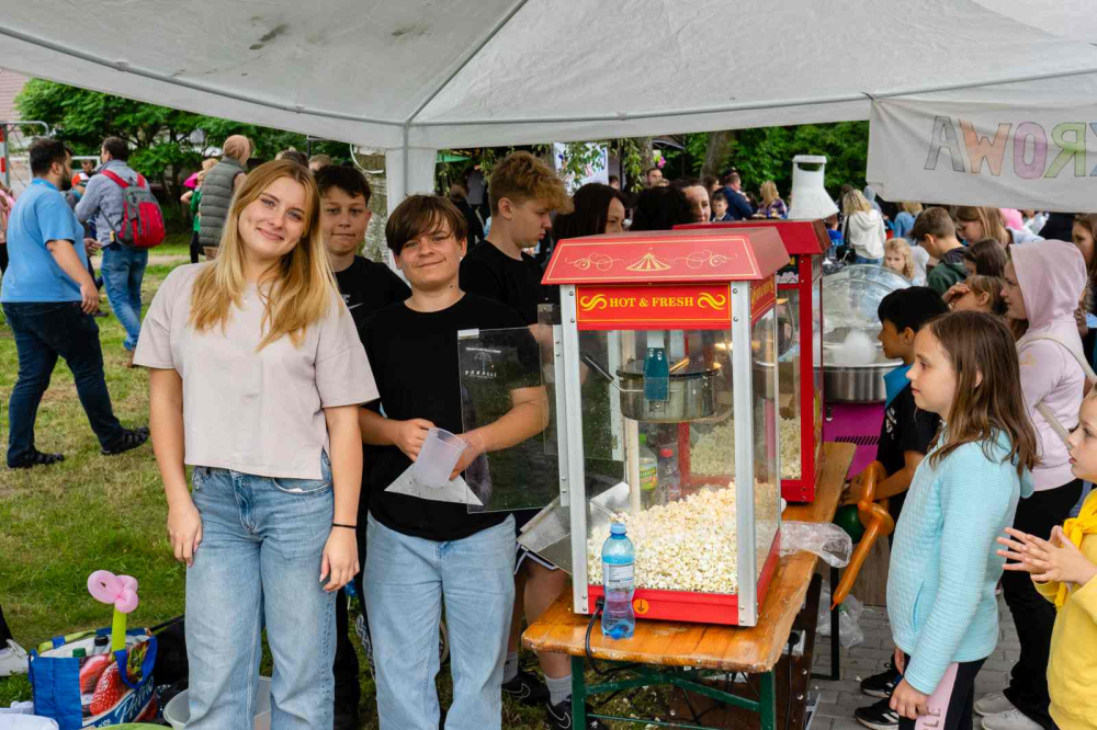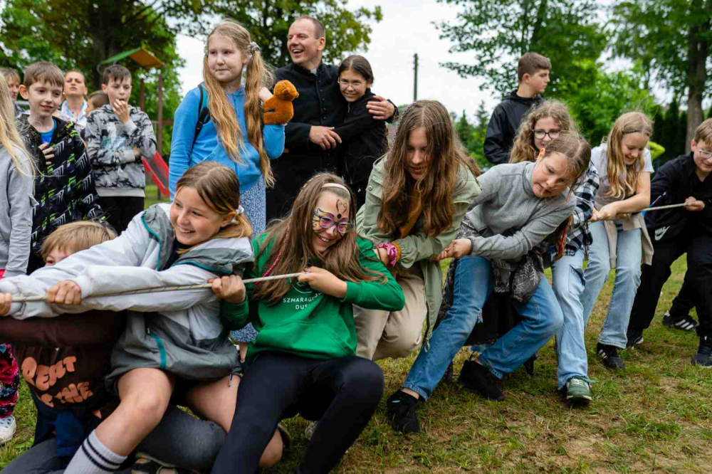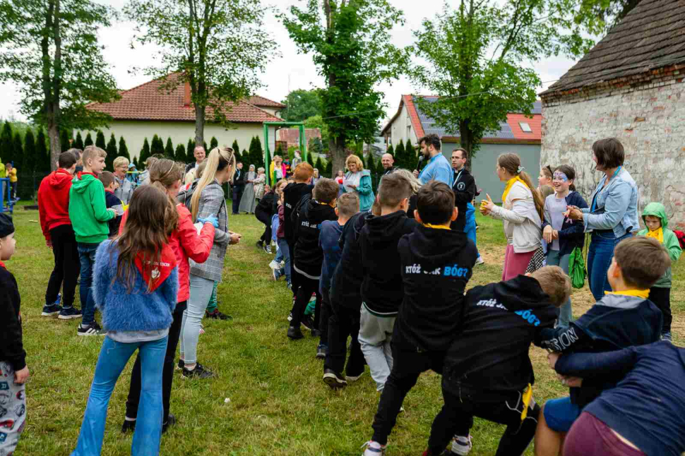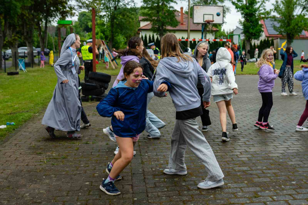 Po modlitwie przyszedł czas na zabawę. Nie przeszkodził nawet deszcz, który lekko mżył z nieba, na szczęście w czasie, gdy wszyscy skupili się konsumpcji. Na dzieci czekało mnóstwo atrakcji. Były warkoczyki, malowanie twarzy, długopisy 3D, balonowe zwierzęta, kolorowa chemia, malowanie na folii, gra w koszykówkę, popcorn i wata cukrowa. Oczywiście, jak zawsze, bawiono się podczas tańców i przeciągania liny. Ostatnią konkurencję wygrała ponownie grupa z Kozielic!