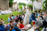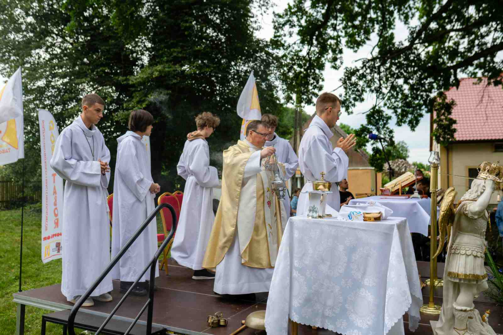Następnie odbyła się Msza Święta, której przewodniczył ks. Bogusław Burgat SChr, wikariusz generalny zgromadzenia, a kazanie do dzieci wygłosił ks. Dominik Bieniek SChr z Dobrzan, zwracając uwagę dzieci na to, że niebo czeka na każdego oraz na postać św. Michała Archanioła – patrona tegorocznej Góry Tabor Junior (nota bene również patrona parafii w Dobrzanach).