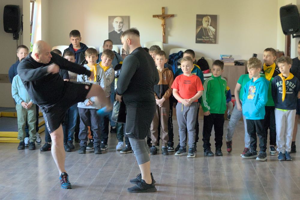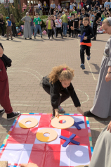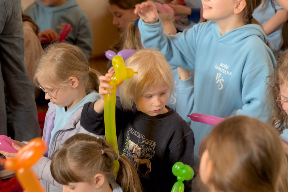 W 2024 roku wszystko się udało! Przede wszystkim bardzo udali się goście, bo w spotkaniu uczestniczyło blisko 200 dzieci, do tego młodzież – wolontariusze z parafii gospodarzy – a także dorośli: zarówno organizatorzy, jak i opiekunowie grup. Przybyli księża chrystusowcy i siostry misjonarki ze Szczecina Podjuch i Zdrojów, Goleniowa, Dobrzan, Pyrzyc, Sarbi oraz obu stargardzkich parafii. Po drugie udała się niezwykle pogoda, a to zawsze największa bolączka organizatorów, bo wszystko można przewidzieć, zaplanować, a na to jedno wpływu się nie ma. Na szczęście Pan Bóg sprzyjał i były po prostu przepięknie wiosennie. Po trzecie chyba (skromność nakazuje to poddać pod osąd obecnych na Spotkaniu) udały się wszystkie zajęcia! A były bardzo różnorodne: żołnierska musztra, sztuki walki, zapasy, mały mechanik, majsterkowicz (każda parafia wyjechała z własnym karmnikiem zrobionym przez dzieci!), dawne gry i zabawy (pokazanie kratek, gry w kapsle, kosza było naprawdę hitem); strefa beauty, długopisy 3d, naukowa szyfrowania, kolorowa chemia i balonowe zwierzaki – wszystkie zajęcia prowadzone przez profesjonalistów i pasjonatów związanych z zespołem Boże Światełka!