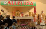 Zaczęliśmy nasze spotkanie jednak od Mszy Świętej, bo to jednoczy wszystkich uczestników… Przewodniczył jej ks. Marcin Bińkowski SChr, miejscowy duszpasterz, a kazanie wygłosił koordynator duszpasterstwa dzieci w parafiach chrystusowców ks. Maciej Onaszkiewicz SChr, który przypomniał o tym, co jest tematem zarówno tego Spotkania, jak i tegorocznej Góry Tabor Junior – że NIEBO CZEKA na każdego! Ostatnim akordem było międzyparafialne współzawodnictwo, które wygrał zespół ze Szczecina Podjuch. Gratulujemy!