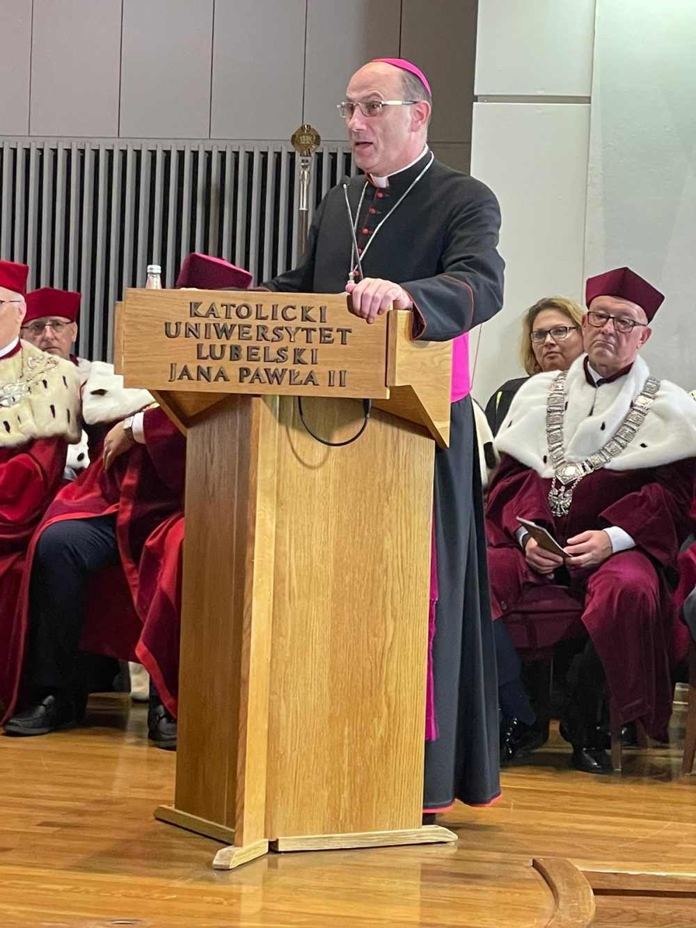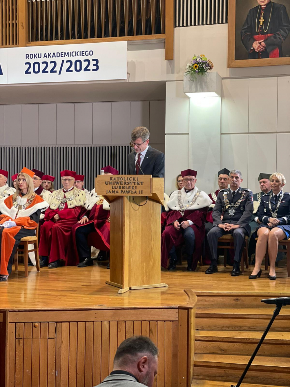 Nie mogło zatem zabraknąć chrystusowców w sobotę 15 października 2022 r. na uroczystym rozpoczęciu roku akademickiego w Akademii Kultury Społecznej i Medialnej w Toruniu i dzień później w Katolickim Uniwersytecie Lubelskim Jana Pawła II w Lublinie, w której uczestniczył nasz ekonom generalny i rzecznik prasowy ks. dr Marek Grygiel SChr jako delegat ks. Generała Krzysztofa Olejnika SChr.