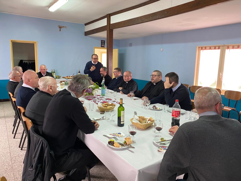 We wtorkowe przedpołudnie 9 maja 2023 r. do największej naszej placówki duszpasterskiej w północnej Francji zjechali się chrystusowcy z innych regionów Francji, nie tylko aby zatrzymać się i podjąć osobistą refleksję nad stanem swojego życia duchowego, ale również, by wspólnie świętować osobiste uroczystości (imieniny, urodziny) Współbraci oraz rocznice i jubileusze kapłańskie, wszak w maju wszyscy przyjmowali święcenia. W Roku Pańskim 2023 pięciu chrystusowców posługujących we Francji obchodzi okrągłe – jubileuszowe rocznice swoich kapłańskich święceń (porcelanową, perłową, koralową i rubinową). To wspólne celebrowanie uroczystości osobistych oraz rocznicy święceń stało się okazją do modlitwy w intencji wszystkich chrystusowców, by nie gasła apostolska gorliwość a Pan wspierał swoją łaską wszelkie podejmowane dobre dzieła.