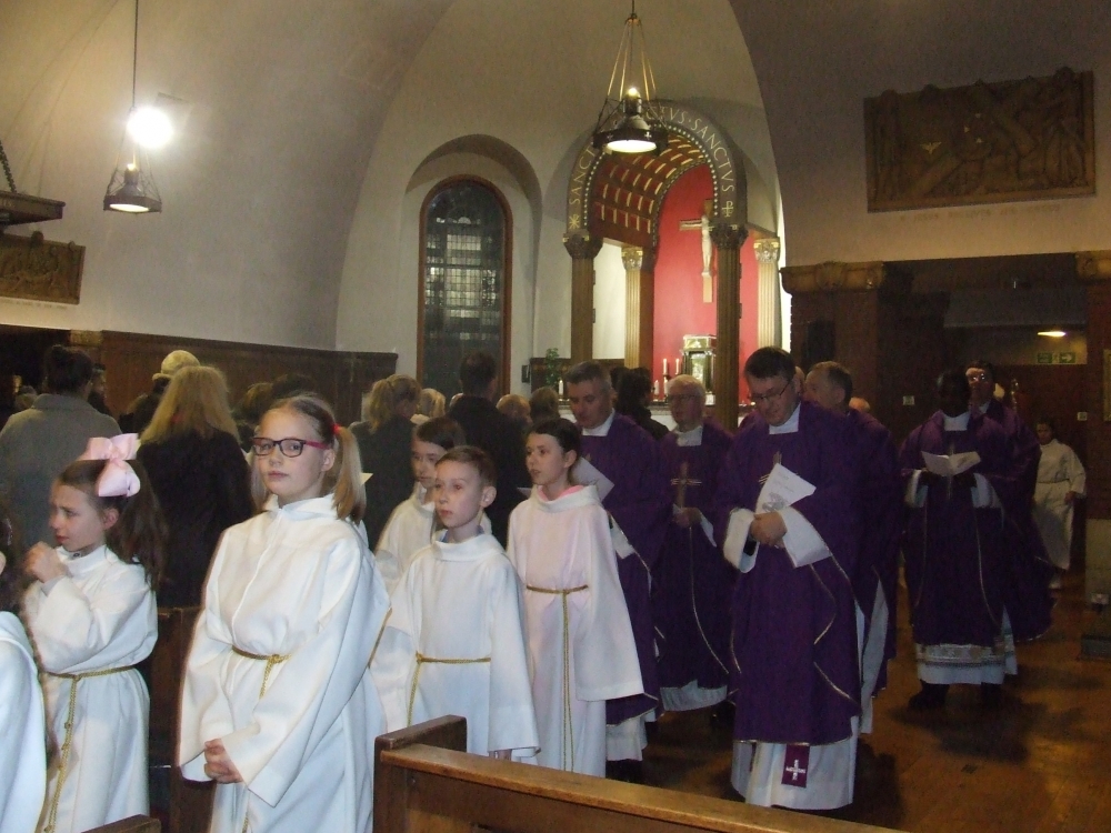 Nawiązując do tradycji rzymskiej, kościół parafialny został wyznaczony jako jeden z kościołów stacyjnych podczas tegorocznego Wielkiego Postu. Ksiądz Arcybiskup w swej homilii przedstawiając trzy filary życia duchowego: post, modlitwę i jałmużnę, podkreślił ich szczególne znaczenie w życiu Kościoła i każdego katolika. Mimo, że niektózy traktują je fakultatywnie, to jednak, jak wskazał metropolita Glasgow, są esencją i fundamentem chrześcijańskiego życia. Stąd usilnie zachęcił do ich praktykowania. Liturgię Mszy Świętej ubogacił chór dekanalny.