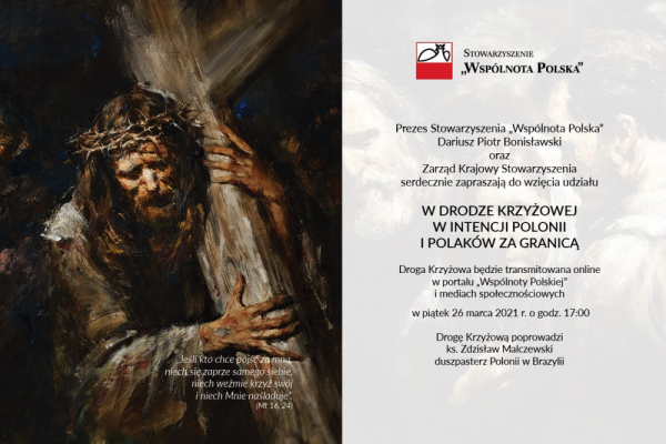 Na stronach www stowarzyszenia «Wspólnota Polska» znajdujemy zaproszenie do udziału w Drodze Krzyżowej w intencji Polonii, którą poprowadzi nasz Współbrat, ks. dr Zdzisław Malczewski SChr, rektor PMK w Brazylii.