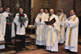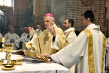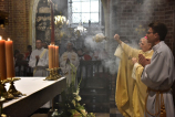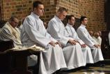 Wspólnej modlitwie przewodniczył bp Grzegorz Balcerek, biskup pomocniczy archidiecezji poznańskiej (tyt. Selendety), który w wygłoszonej okolicznościowej homilii, komentując odczytane czytania (nota bene z dnia – wtorku V tygodnia Wielkanocy, gdyż, jak zauważył homilista, mogą stanowić cenną i wspaniałą wskazówkę dla podejmujących posługi wynikające z przyjętych święceń), zachęcał nowo wyświęcanych, jak i wszystkich zgromadzonych do odważnego i gorliwego głoszenia Dobrej Nowiny, do ‘pójścia na całość’ mimo trudności, cierpień czy innych niedogodności. Tak, jak to było w życiu św. Pawła, Apostoła Narodów, którego misyjną pracę streszcza pierwsze czytanie (zob. Dz 14,19-28) i który pisał do Galatów, że nie żyje już on, lecz żyje w nim Chrystus, a jego życie jest życiem wiary w Syna Bożego, który umiłował go i samego siebie wydał za niego (por. Ga 2,20). Ks. Biskup odwołał się do naszego patrymonium, w którym znajdzie się wiele zachęt Ojców naszej wspólnoty do odważnego podejmowania posługi oraz odnajdzie wspaniałe przykłady takiej gorliwości, jak choćby zamordowanego w lutym 1945 r. przez czerwonoarmistę ks. Pawła Kontnego SChr, który bronił czci i godności niewieściej.