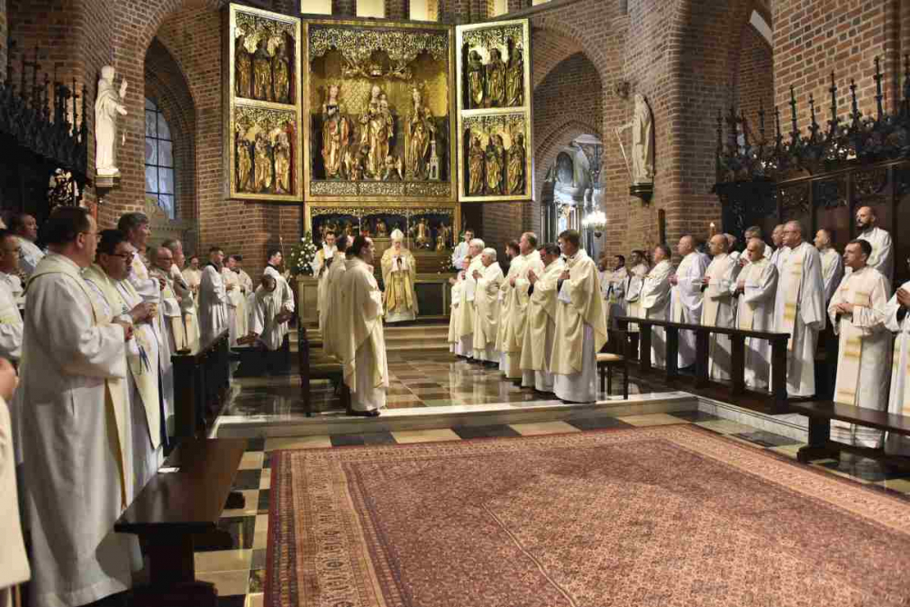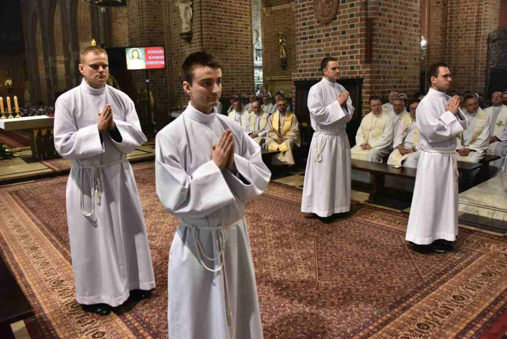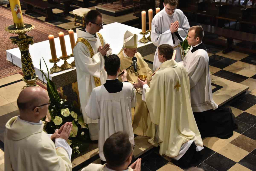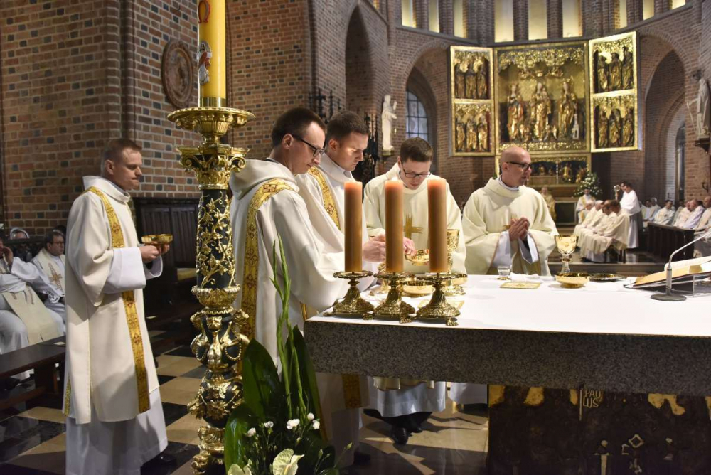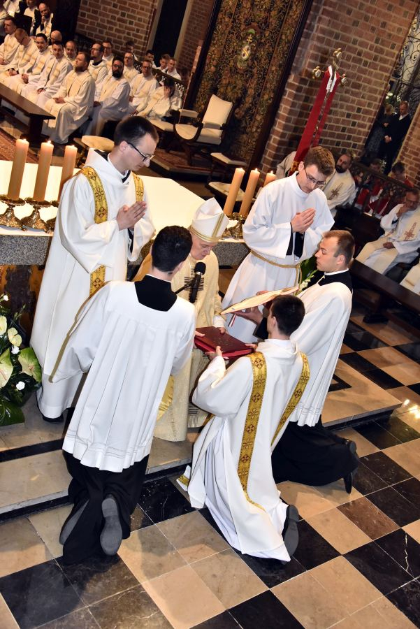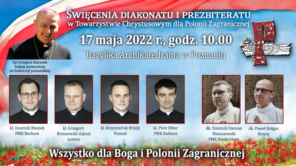 „Na grobach Apostołów modliłem się o ducha apostolskiego dla członków Towarzystwa Chrystusowego, o pełne i wyłączne oddanie się zadaniom jego, o taki żar gorliwości, iżby spalił wszystko to, co samolubne w jakiemkolwiek znaczeniu, a miłością Bożą bez granic uszlachetnił i spotęgował wszystko to, co jest pierwiastkiem szlachetnym i z łaski Bożej porywem ku doskonałości i ofierze z siebie” (A. HLOND, List do o. Ignacego z 21 listopada 1934 r., AH t. IV, cz. I, s. 166) – te słowa Założyciela, Czcigodnego Sługi Bożego kard. Augusta Hlonda, przywołał we wtorek 17 maja 2022 r., na początku liturgii Mszy Świętej z udzieleniem święceń prezbiteratu i diakonatu, ks. dr Jan Hadalski SChr, rektor naszego zakonnego seminarium. Albowiem w prastarej poznańskiej katedrze, niegdyś stolicy biskupiej i prymasowskiej naszego Założyciela, stworzyliśmy wspólnotę modlitwy: chrystusowcy z kraju i zagranicy z najwyższymi przełożonymi zgromadzenia i przełożonymi prowincjalnymi na czele, rodzice, rodzeństwo, rodzina, przyjaciele kandydatów do święceń, duchowieństwo zakonne i diecezjalne, siostry i bracia zakonni, wykładowcy seminaryjni, pracownicy agend naszego zgromadzenia, przyjaciele i darczyńcy. I naszą serdeczną modlitwą otoczyliśmy diakonów Dominika i Pawła, którzy zostali wyświęceni na prezbiterów oraz Dominika, Grzegorza, Krzysztofa i Piotra wyświęconych na diakonów.