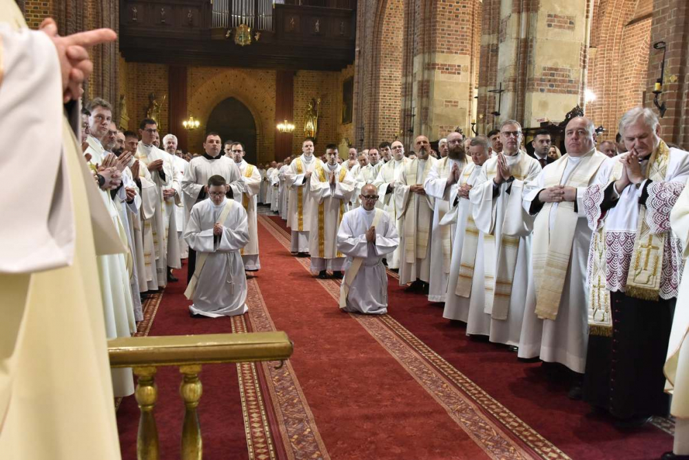 Przywołując zaś słowa odczytanej Ewangelii (zob. J 14,27-31a) hierarcha mówił, że nie należy się trwożyć i lękać, ponieważ Zmartwychwstały Pan jest z nami i będzie nas umacniać i wspierać; obdarzy nas prawdziwym pokojem, takim, którego świat dać nie może. A jako swoiste życzenia wskazał scenę z jednej pielgrzymek św. Jana Pawła II zawartą w autobiograficznej książce „Wstańcie, chodźmy!”, gdzie papież, odwołując się do swojego doświadczenia, zachęcał do poświęcenia się w służbie Chrystusowi i człowiekowi i mówił, że „warto oddać życie za Ewangelię i za braci!” (por. JAN PAWEŁ II, Wstańcie, chodźmy!, Kraków 2004, s. 101) Tego odnalezienia wartości oddania życia za Ewangelię i za braci życzył nowo wyświęcanym i wszystkim uczestnikom uroczystości.