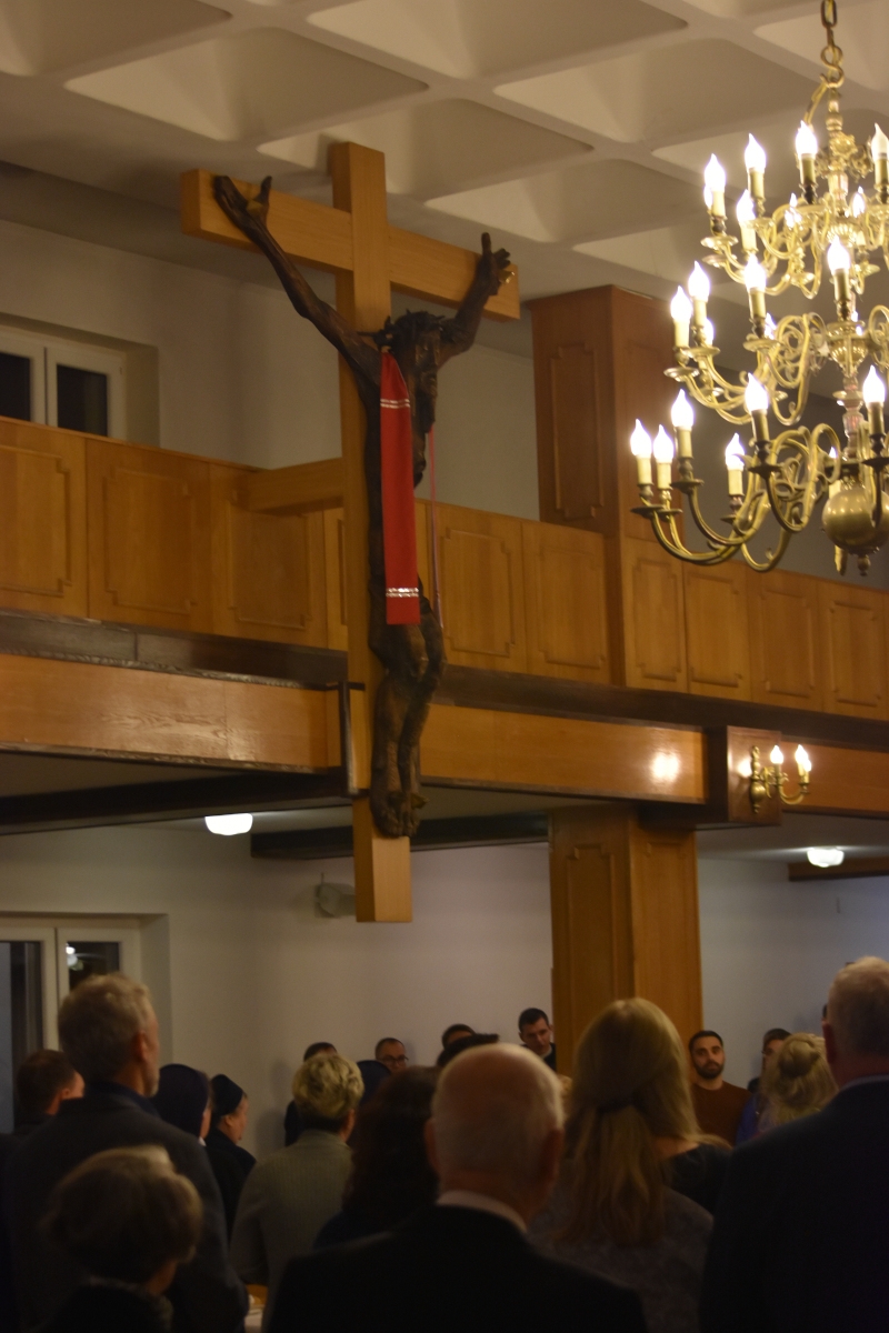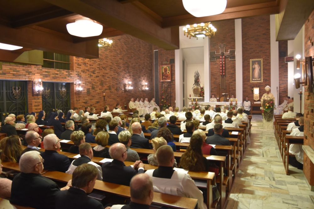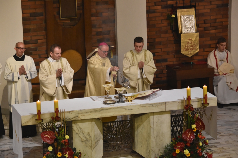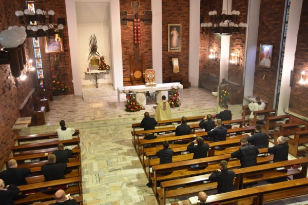 Na ów kulminacyjny moment świętowania – na Mszę Świętą przybyli licznie kapłani diecezjalni i zakonni, siostry i bracia zakonni, pracownicy agend naszego zgromadzenia, nasi przyjaciele i darczyńcy, nasi nowicjusze a także rodzice naszych alumnów. Ks. Biskup w wygłoszonym słowie wyjaśniał sposób królowania przez Jezusa: On nigdy w czasie publicznej działalności nie określił siebie królem, o swojej godności królewskiej mówił dopiero w czasie procesu przed Piłatem. Odśpiewana Ewangelia (Łk 23,35-43) zaś najpełniej ukazuje sposób Jezusowego królowania: oto Król zhańbiony, wyszydzony i umęczony w cierniowej koronie królujący na tronie, którym jest Jego Krzyż.