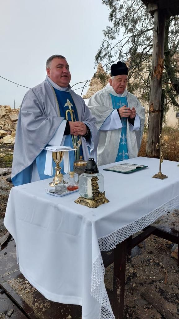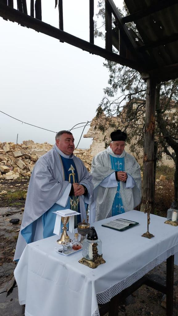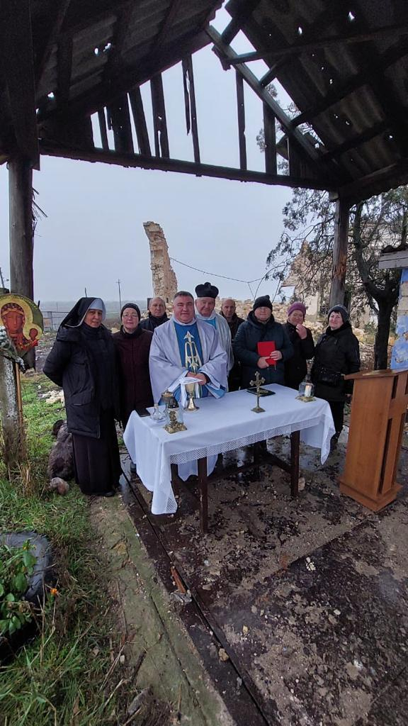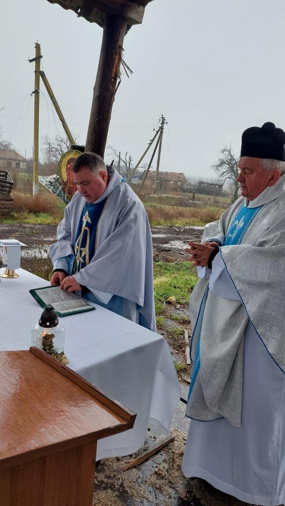 Niemalże pół roku temu na łamach naszego zakonnego kalendarium ukazały się słowa pozdrowień od duszpasterzującego tam naszego Współbrata, ks. Aleksandra Repina SChr, dzięki którego zaangażowaniu ta wspólnota spotyka się na modlitwie i na Mszy Świętej. Informowaliśmy również o zniszczeniu należącego do mikołajowskiej parafii kościoła w Kisielówce: 8 grudnia 2022 r., w uroczystość Niepokalanego Poczęcia NMP, która dla tamtejszej świątyni była świętem jej tytułu, na jej gruzach była sprawowana Msza Święta. Przewodniczył jej ks. Aleksander, a koncelebrował dziekan tamtejszego dekanatu ks. Kazimierz Wójciak SP z Oczakowa. Uczestniczyli parafianie z Kisielówki oraz posługujące w parafii siostry benedyktynki. Jak wskazuje opis na Facebooku (post i film) pogoda w ogóle nie sprzyjała zorganizowaniu uroczystości pod gołym niebem: było zimno i mokro, chociaż na czas sprawowanej Eucharystii przestało padać, co uczestnicy odczytali jako znak Bożej łaski i opatrzności. Family News Service, a za nim portal zyciezakonne.pl przedstawia refleksje naszego Współbrata związane z przeżywanym odpustem w tych tragicznych okolicznościach, szczególnie ze znakiem związanym z ustąpieniem deszczu w czasie Mszy Świętej. Wymowne zdają się być tu następujące słowa: W uroczystość Niepokalanego Poczęcia NMP wszyscy doświadczyliśmy cudu. W drodze do Kyseliwki [Kisielówki] była ulewa, podobnie w drodze powrotnej. Kościół jest zniszczony, więc Mszę Świętą odprawialiśmy pod zadaszeniem. Niesamowite, że podczas Eucharystii deszcz ustał. Dla nas był to znak, że Najświętsza Maryja Panna opiekuje się nami; chce, żebyśmy tam byli, modlili się i odbudowali ten kościół.