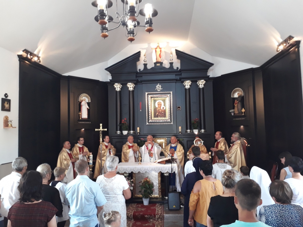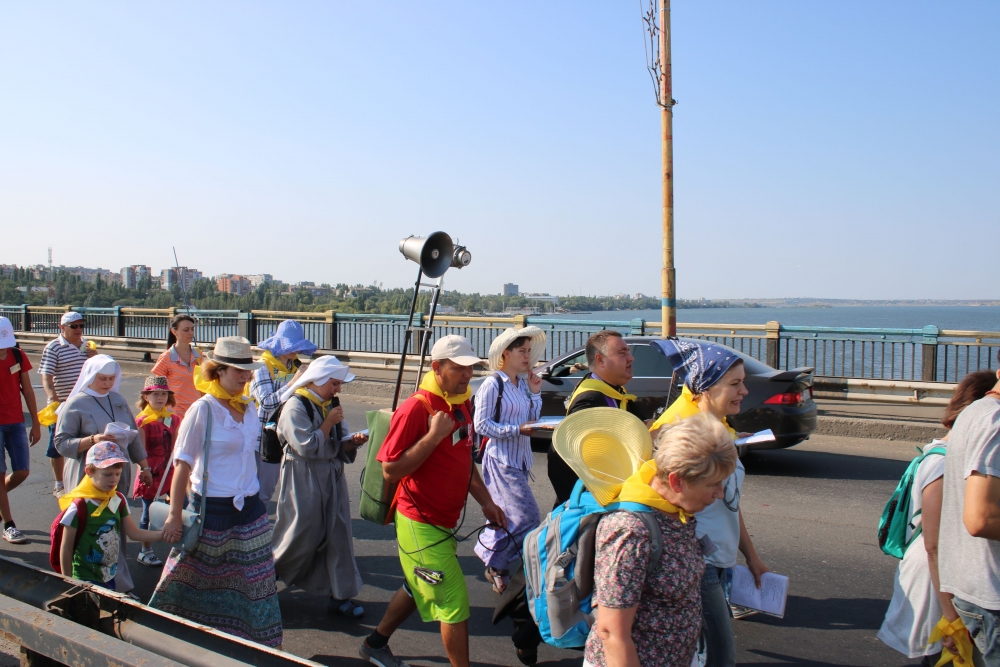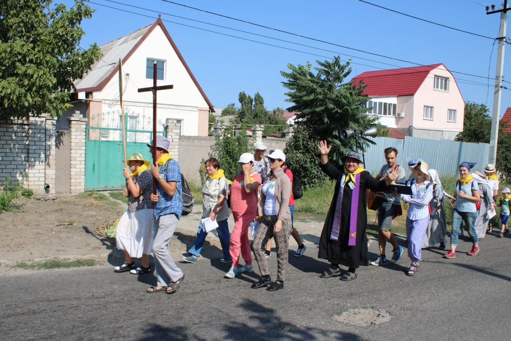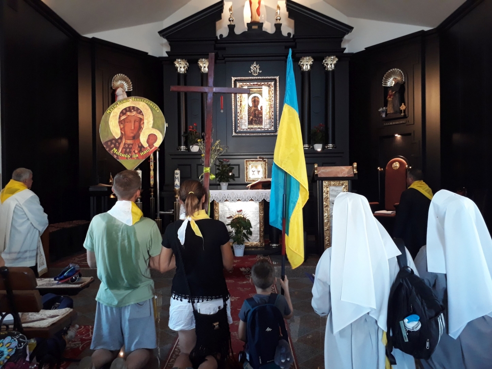 Zebrała się grupa około dwudziestu pięciu osób wraz z posługującymi w parafii siostrami zakonnymi. Przewodnikiem wędrującej wspólnoty był lokalny duszpasterz ks. Oleksandr Ryepin SChr. Pielgrzymka miała charakter ewangelizacyjny. Jej główną intencją była modlitwa o pokój na Ukrainie i zakończenie wojny. Pątnicy przybyli do celu 24 sierpnia, który był dniem szczególnym, bowiem wtedy obchodzi się święto niepodległości Ukrainy. Następnego dnia, w sobotę w samo południe sprawowana była w sanktuarium odpustowa Eucharystia, której przewodniczył bp Jacek Pyl.