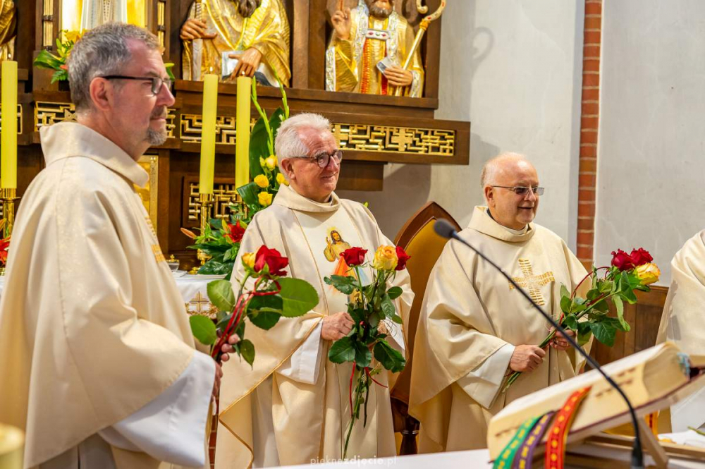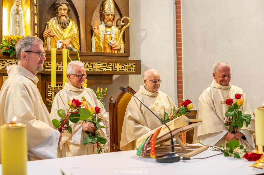 W niedzielę 29 maja 2022 r. w kościele pw. Świętych Apostołów Piotra i Pawła w Szczecinie-Podjuchach czterech współbraci celebrowało wobec wspólnoty parafialnej 40-lecie swoich święceń kapłańskich. Oprócz miejscowego proboszcza, ks. Krzysztofa Rytwińskiego SChr byli to ks. Mieczysław Żygadło ze Stanów Zjednoczonych, który przewodniczył liturgii, ks. Stanisław Hajkowski SChr i ks. Marian Jachym SChr z Irlandii, który w ramach homilii podzielił się refleksją nad wielkością daru kapłaństwa, upływem czasu i zmian, jakie wraz nim przychodzą. Na zakończenie Mszy Świętej przedstawiciele dzieci, młodzieży, służby liturgicznej, Żywego Różańca i Rycerzy Kolumba złożyli dostojnym Jubilatom życzenia i wręczyli róże. Dziękczynienie Bogu za dar kapłaństwa Jubilaci przeżywali ciesząc się także z tego, że choć pracują w odległych miejscach kuli ziemskiej, mogli spotkać się i spędzić wspólnie czas w atmosferze szczerej serdeczności i przyjaźni.