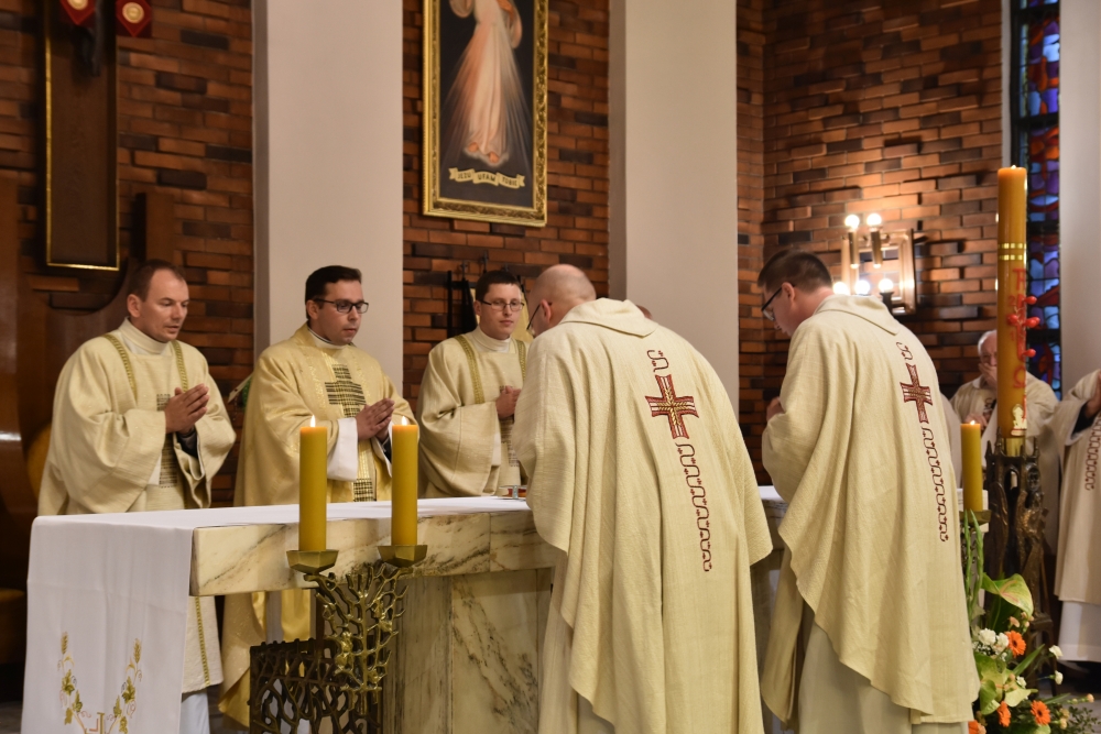 Następnie, w piątek 24 maja, dokładnie w dzień 50. rocznicy święceń kapłańskich dziękczynną Eucharystię celebrowali złoci Jubilaci, ks. Jerzy Chorzempa SChr, ks. Franciszek Gałdyś SChr, ks. Zygmunt Ostrowski SChr i ks. Edward Strycharz SChr. Przewodniczył jej i homilię wygłosił przełożony generalny, ks. Ryszard Głowacki SChr.