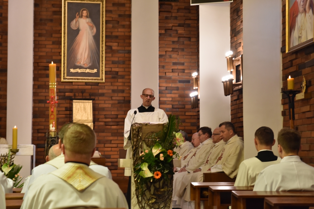 Przewodniczył jej ks. Michał Armatys SChr a okolicznościową homilię wygłosił przełożony generalny, ks. Ryszard Głowacki SChr, który wychodząc od odczytanej w Ewangelii alegorii o winnym krzewie (J 15,1-8), uwrażliwiał jak ważnym w życiu kapłana jest trwanie przy Chrystusie i w Chrystusie. Właśnie od tego zjednoczenia z Chrystusem należy czerpać moc do ofiarnej i owocnej duszpasterskiej posługi. W swoją refleksję ks. Generał wplótł wypowiedzi Kardynała Założyciela, który w życzeniach dla polskich księży pracujących we Francji przypominał o tej ważności zjednoczenia z Chrystusem mówiąc m.in.: Kapłan ofiarnie zjednoczony z Jezusem zostaje przepojony tą zwycięską mocą Chrystusa, która, pokonując świat i nowoczesny jego bunt przeciwboży, uleczy i uratuje, i zbawi ludzkość. Najpiękniejszym owocem eucharystycznej łączności kapłana z Chrystusem, ale jakże niezawodnym sposobem i środkiem zbawienia ludzkiej społeczności, jest bohaterstwo kapłańskie na miarę Chrystusową. Kapłan bohater oto ‘alter Christus Salvator’. W świętej ambicji kapłańskiej dążmy do tego bohaterstwa, które sprawi cud przeobrażenia i zbawienia ludzkości! Trwajmy na każdy dzień w pierwszych szeregach Kościoła apostołującego słowem i czynem Prawdę i Dobro, a zwalczającego kłamstwo i zło; trwajmy w krzyżu codziennego trudu kapłańskiego, zapewniając sobie wspaniały udział w wiecznej chwale zawsze zwycięskiego, triumfującego Kościoła (A. Hlond, «Życzenia dla księży polskich pracujących we Francji. Z okazji rekolekcyj kapłańskich w Clamart. Poznań, 10[25] XI 1938», Acta Hlondiana III, 3, 124-125).