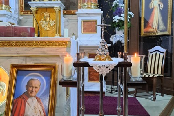 W niedzielę 5 października 2025 r., w niedzielę poprzedzającą XXV Dzień Papieski obchodzonego w bliskim sąsiedztwie kolejnej rocznicy wyboru Karola Wojtyły na Stolicę Piotrową wierni potulickiej parafii, mieli możliwość oddać cześć Świętemu Janowi Pawłowi w Jego relikwiach. Stało się to dzięki życzliwości potuliczanina ks. Piotra Janasa SChr, który te relikwie zabiera do miejsca swego posługiwania w Stanach Zjednoczonych. Potuliczanie skorzystali niejako z obecności swojego rodaka oraz z okazji, by uczcić największego z rodu Polaków, jak często i nawet już za życia określany był św. Jan Paweł II, by też przypomnieć sobie po raz kolejny jego nauczanie i je zgłębiać, czemu właśnie służą obchodzone od 2001 r. kolejne Dni Papieskie: w bieżącym 2025 roku pod hasłem „Św. Jan Paweł II. Prorok Nadziei”.