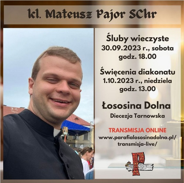 W święto Świętych Archaniołów AD 2023 kl. Augustyn Kozieracki SChr podczas porannej Mszy Świętej w kaplicy seminaryjnej ponowił śluby zakonne na kolejne trzy lata. Przez dwa kolejne dni oczy wszystkich chrystusowców były zwrócone ku kościołowi parafialnemu pw. Świętych Apostołów Piotra i Pawła w Łososinie Dolnej, gdyż  w nim na wieki swoje oddanie Chrystusowi i polskiej rzeszy wychodźczej w sobotę 30 września 2023 r. wypowiedział kl. Matthew Pajor SChr. Swoje śluby złożył na ręce ks. Bogusława Burgata SChr, wikariusza generalnego w obecności swoich rodziców i bliskich (którzy pochodzą właśnie z Łososiny Dolnej) oraz wielu Współbraci z kraju i zagranicy (na czele z przełożonym prowincji północnoamerykańskiej ks. Jackiem Walkiewiczem SChr). Natomiast w niedzielę 1 października 2023 r. przez posługę bpa Leszka Leszkiewicza, biskupa pomocniczego diecezji tarnowskiej (tyt. Bossa) przyjął święcenia diakonatu.