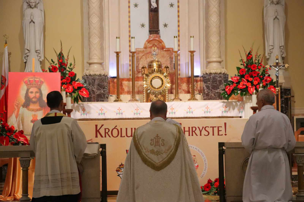 Uczestniczyli oni w liturgii I Nieszporów ubogaconych piękną oprawą muzyczną przygotowaną przez chrystusowców. Przewodniczył jej ks. Jacek Walkiewicz SChr, przełożony prowincji pw. Królowej Polonii Zagranicznej Chrystusowców obejmującą USA i Kanadę, a okolicznościowe kazanie wygłosił ks. Wiesław Wójcik SChr, który wskazując na kończący się Rok Modlitwy, podkreślił ważność modlitwy uwielbienia. Wspólna modlitwa brewiarzowa stała się również okazją do odnowienia ślubów zakonnych przez siostry i księży. Liturgiczna celebracja zakończyła się odśpiewaniem inwokacji do Chrystusa Króla. A całe świętowanie zwieńczono wspólną agapą zorganizowaną w sali parafialnej.