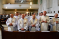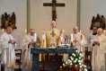 Mszy Świętej przewodniczył bp Franz-Josef Overbeck. W wygłoszonej homilii podkreślił on związek biblijnych postaci noszących imię Józef z misją, którą pełnią obecnie posługujący w prowincji chrystusowcy. Zestawił emigracyjne losy Józefa ze Starego i Nowego Testamentu. Przypomniał również, że ten święty Patron jest nazywany opiekunem rodzin i ludzi pracujących. Skierował słowa życzeń nieustannego zapału w duszpasterskiej opiece nad Polakami powierzonymi duszpasterskiej opiece członków Prowincji św. Józefa. Słowa wdzięczności za obecność na uroczystościach jubileuszowych i dobrą współpracę z Kościołem lokalnym w Niemczech skierował do biskupa pod koniec Mszy Świętej Przełożony Generalny Chrystusowców, przypominając, że od początku istnienia prowincji, jej siedziba była zawsze związana z diecezją Essen.