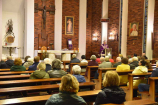 Liczna reprezentacja tego ruchu, bowiem przybyło 50 osób, głównie z terenu Wielkopolski, ale i nie tylko, przeżywała wielkopostny dzień skupienia. W konferencjach i w programie słowno-muzycznym poruszane były treści dotyczące Pasji Jezusa Chrystusa i Tajemnicy Eucharystii. Tematem przewodnim spotkania były słowa odnoszące się do realizowanego w Polsce duszpasterskiego hasła bieżącego roku kościelnego „Posłani w pokoju Chrystusa”. Przedstawiane przez ks. dra Pawła Jasinę SChr w konferencjach rozważania osnute były na biblijnym przekazie Chrystusowej katechezy o Eucharystii z szóstego rozdziału Ewangelii wg św. Jana. W prostym i jasnym przekazie Rekolekcjonista przeprowadził uczestników od perykopy o cudownym rozmnożeniu chleba przez kolejne wersety tego rozdziału, by ukazać, że ów cud i Jezusowa mowa w synagodze w Kafarnaum stanowiły zapowiedź Eucharystii. Swoistym z wieńczeniem podjętej refleksji było uczestnictwo we Mszy Świętej, aby móc doświadczać, że ten, kto mnie spożywa Chrystusa, będzie żyć przeze Niego (por. J 6,57), zgodnie z biblijnym mottem tego czasu skupienia. Po liturgii w klasztornym refektarzu uczestnicy spotkali się na agapie przy kawie, herbacie i ciastach przez siebie upieczonych. Ostatni punkt programu stanowiły rozważania słowno-muzyczne „Męka i Śmierć Pana Jezusa Chrystusa wg Romana Brandstaettera” przygotowane i przedstawione przez prof. Lecha Bałabana i prof. Wiesława Bednarka. Przejmująco ukazana słowami poety, Męka Pana Jezusa ilustrowana była trafiającymi do serca dźwiękami altówki.