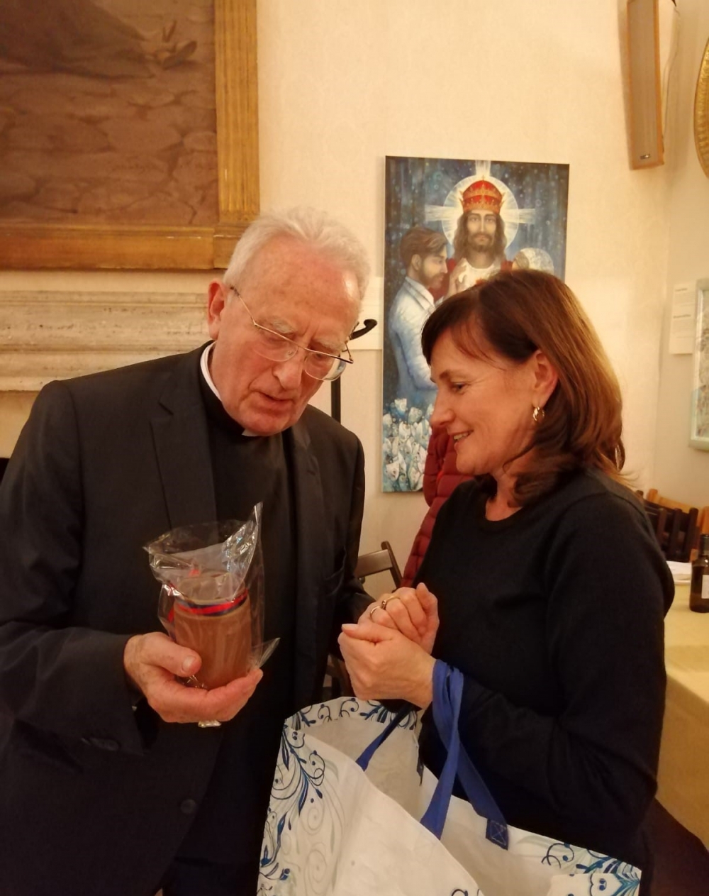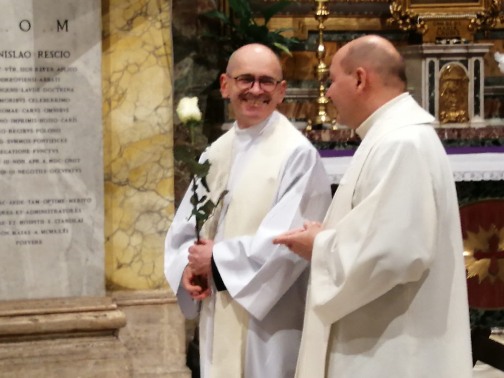 Następnie ks. prowincjał oraz ks. Mateusz Gardziński SChr (radny generalny a zarazem prokurator generalny) wręczyli w imieniu Przełożonego Generalnego medal za zasługi dla naszego zgromadzenia, ks. prałatowi Pawłowi Ptasznikowi, obecnemu rektorowi kościoła św. Stanisława i kapelanowi Polaków w diecezji rzymskiej, a jednocześnie pracownikowi watykańskiego Sekretariatu Stanu. Medal ten jest wyrazem uznania naszej rodziny zakonnej wobec wieloletniej posługi ks. Ptasznika dla dobra rzymskiej Polonii, a także jego życzliwości względem naszej wspólnoty. Po części oficjalnej uczestnicy tego niecodziennego wydarzenia mogli skosztować przygotowanych smakołyków. Trzeba podkreślić ogromną życzliwość przybyłych gości (w tym delegacji Katolickiej Polskiej Szkoły Podstawowej w Rzymie), której doświadczyliśmy na przeróżne sposoby.
