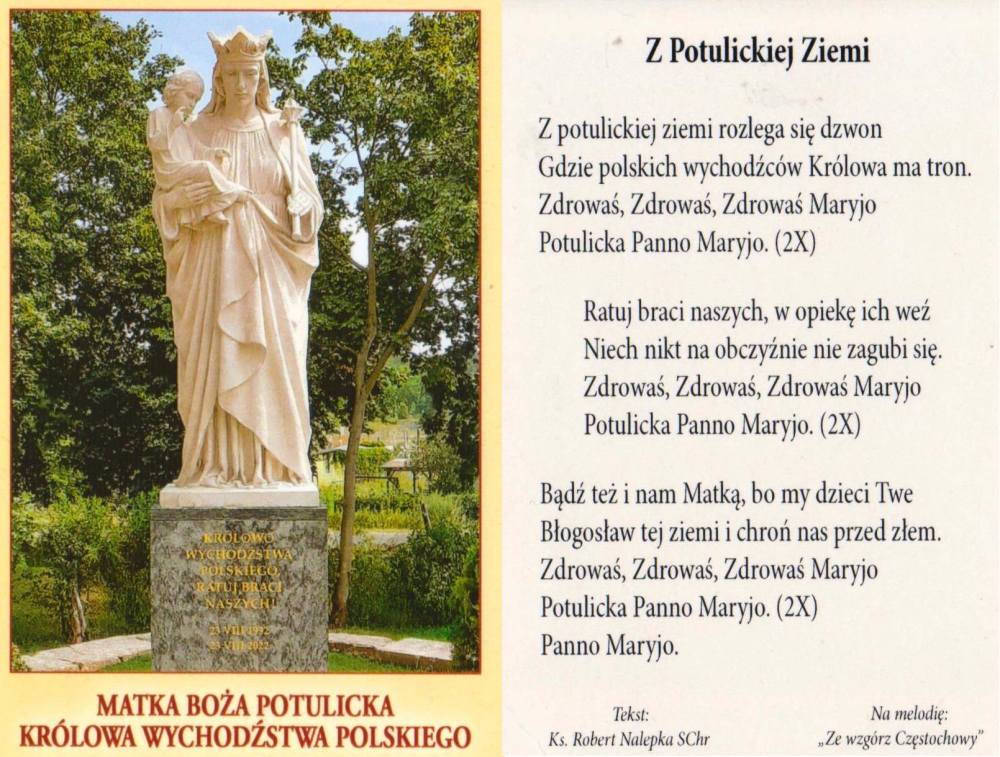 W czasie obchodu jubileuszu naszego 90-lecia w Potulicach została poświęcona statua Matki Bożej Królowej Polskiego Wychodźstwa (która jest kopią figury z 1934 r.). Jak zaświadcza proboszcz potulickiej parafii ks. Maciej Szmytowski SChr, od czasu uroczystości jubileuszowych wierni parafianie gromadzą się przy Figurze na wspólnej modlitwie maryjnej, powierzając, poza intencjami własnymi, osobistymi i własnej wspólnoty, sprawy polskiego wychodźstwa: by nie zagubiło wiary i tradycji ojców, i żaden Polak nie zagubił na obczyźnie, by wszyscy nasi Rodacy na emigracji potrafili zawsze odnaleźć drogę do Pana i by swoje emigracyjne życie budowali na trwałych wartościach i na dobrym fundamencie. Wspólnemu wołaniu do Boga przez wstawiennictwo Maryi towarzyszy specjalnie ułożona pieśń ku czci Królowej Polskiego Wychodźstwa, której słowa do melodii znanej, ale innej pieśni maryjnej pt. Ze wzgórz Częstochowy, napisał ks. Robert Nalepka SChr, wykładowca muzyki liturgicznej w naszym seminarium: