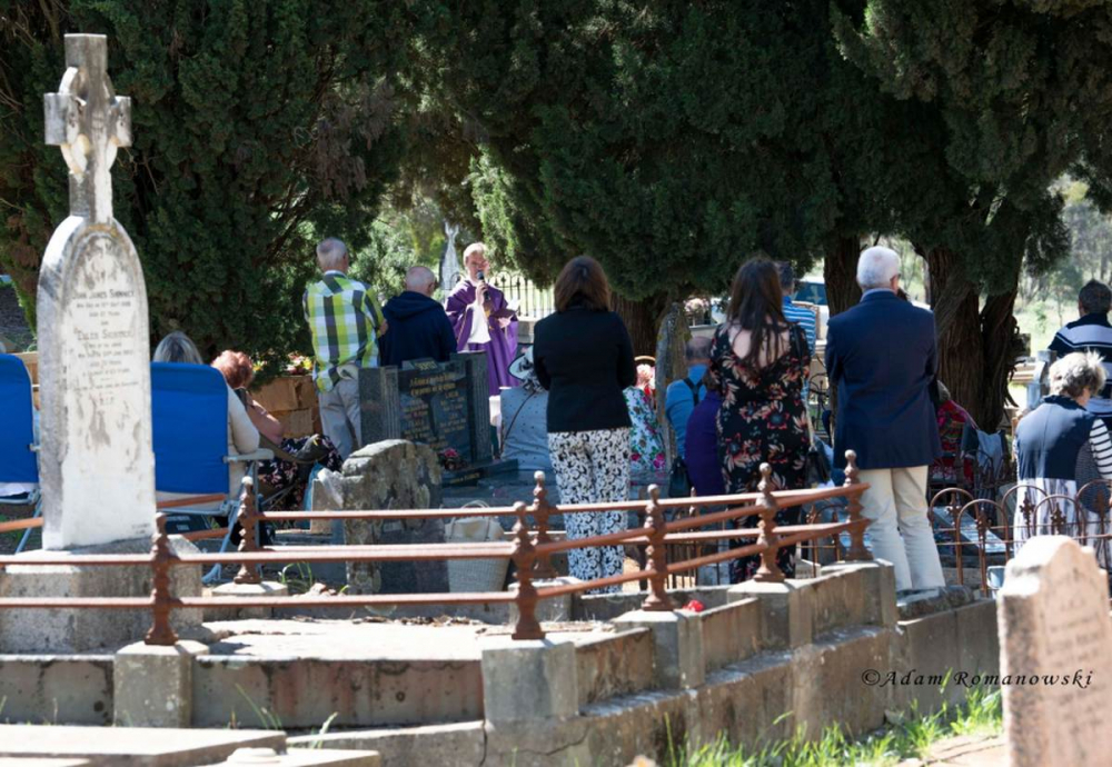 Po zakończeniu Eucharystii uczestnicy tego duchowego wydarzenia odmówili różaniec za zmarłych pochowanych na miejscowym cmentarzu. W trakcie tej modlitwy ks. Michał poświęcał nagrobki. Następnie wszyscy udali się do krypty kościoła św. Alojzego w Sevenhill gdzie przy grobie o. Leona Rogalskiego SJ – pierwszego duszpasterza polskich emigrantów, został złożony wieniec, wyraz wdzięczności za jego posługę na rzecz naszych rodaków, którzy jako pierwsi przybyli do Australii.