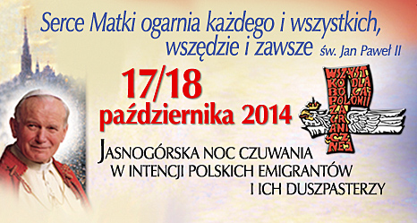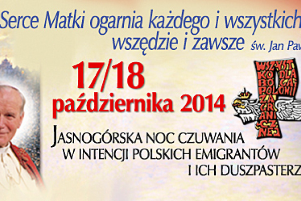 W duchu dziękczynienia za kanonizację Jana Pawła II u stóp Królowej Polski będziemy modlić się za naszych Rodaków za granicą i wszystkie rodziny doświadczone rozłąką emigracyjną. Więcej informacji na stronie czuwania www.czuwanie.chrystusowcy.pl
