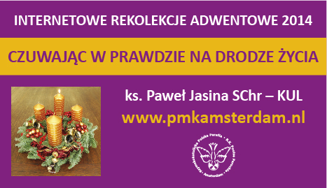 Tradycyjnie już Polska Misja Katolicka w Amsterdamie prowadzona przez chrystusowca ks. Krzysztofa Obiedzińskiego zaprasza na Internetowe rekolekcje adwentowe dla Polonii i nie tylko. W tym roku poprowadzi je nasz współbrat ks. Paweł Jasina - doktorant na Katolickim Uniwersytecie Lubelskim.