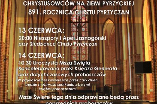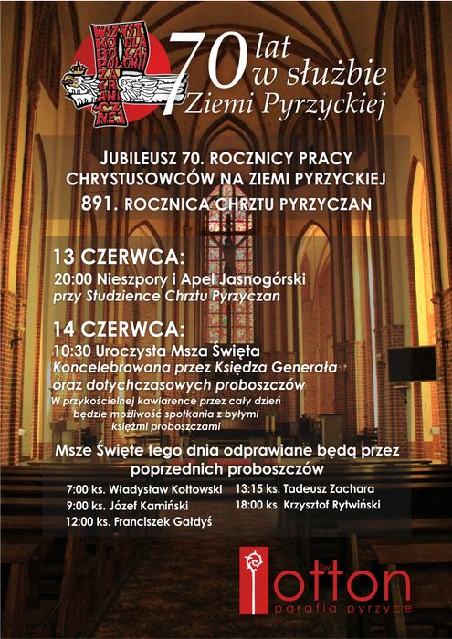 Duszpasterze posługujący w parafii św. Ottona serdecznie zapraszają na uroczystości do Pyrzyc wszystkich proboszczów, wikariuszy, którzy przed laty służyli oraz kapłanów pochodzących z naszej parafii. Obchody tego jubileuszu przewidziane są na 13 i 14 czerwca. Szczegóły na plakacie.