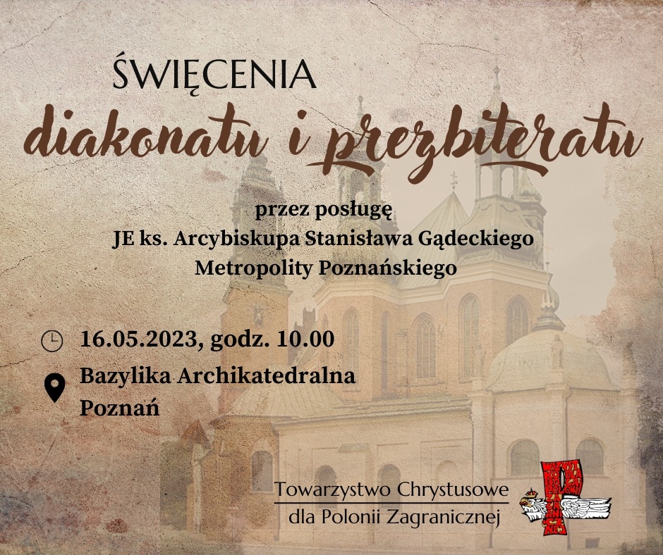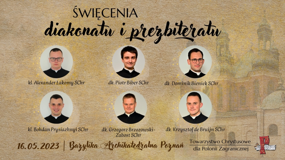 We wtorek 16 maja 2023 r., w liturgiczne święto Świętego Andrzeja Boboli, w 85. roku od jego kanonizacji, przez posługę metropolity poznańskiego abpa Stanisława Gądeckiego czterech diakonów Dominik, Grzegorz, Krzysztof i Piotr zostało wyświęconych na kapłanów, a kolejnych dwóch naszych Współbraci Alexander i Bohdan przyjęło święcenia diakonatu.