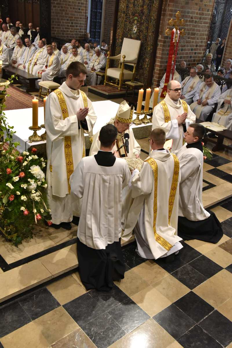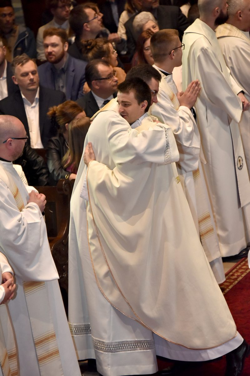 Albowiem ten dzień to wielka radość dla całego zgromadzenia i okazja do wyśpiewania radosnego Magnificat oraz Te Deum laudamus, ale jednocześnie wezwanie do ufnej i wytrwałej modlitwy w intencji nowo wyświęconych prezbiterów i diakonów oraz nowych powołań do służby Bożej. Modlitwą i życzliwością otoczyli ich wszyscy zgromadzeni w katedrze – rodzice, rodziny, profesorowie i wykładowcy, przyjaciele i znajomi ordynowanych, licznie przybyli kapłani, szczególnie Współbracia chrystusowcy z całego świata, bracia i siostry zakonne.