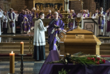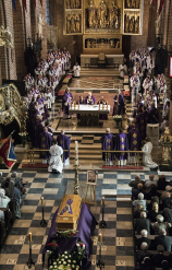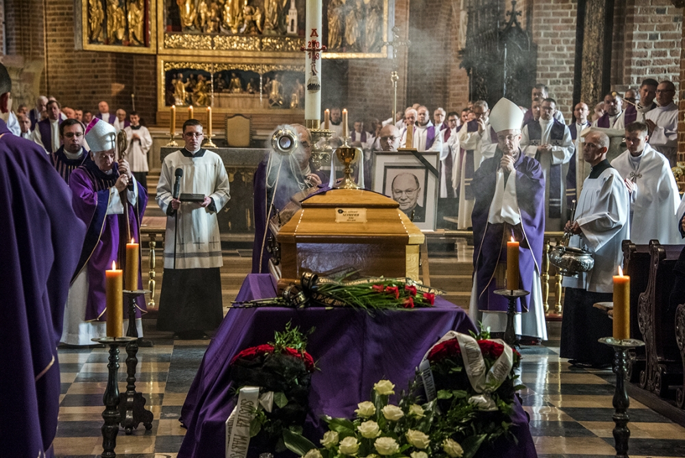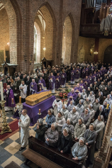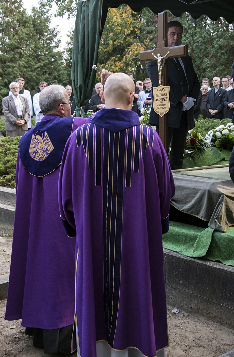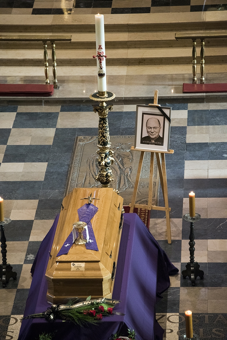 W dzień pogrzebu, we wtorek 16 października 2018 r., udaliśmy się do poznańskiej bazyliki archikatedralnej – chrystusowcy z kraju i zagranicy z najwyższymi przełożonymi na czele: przełożonym generalnym wraz z zarządem i radą generalną oraz przełożonymi prowincjalnymi bądź ich delegatami oraz najmłodsi współbracia – nowicjusze i klerycy ze swoimi wychowawcami. Przybyła rodzina i przyjaciele Zmarłego, przybyli kapłani zakonni i diecezjalni, przybyły siostry zakonne, dla których śp. ks. Edward był spowiednikiem i kierownikiem duchowym, kaznodzieją i rekolekcjonistą. Przybyli też członkowie Ruchu Kultury Chrześcijańskiej „Odrodzenie” i Katolickiego Stowarzyszenia Wychowawców (ci ostatni ze sztandarem prowadzonej przezeń szkoły), dla których przez wiele lat nasz Współbrat był duchowym opiekunem.
