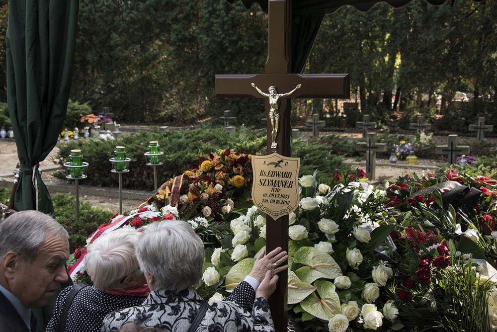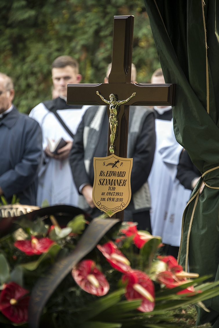 Na zakończenie liturgii przemówili: kolejny z uczniów, ks. Tomasz Sielicki SChr, s. dr Ewa Kaczmarek MChR, przełożona generalna Zgromadzenia Sióstr Misjonarek Chrystusa Króla dla Polonii Zagranicznej, przedstawiciele stowarzyszeń, których duchowym opiekunem był śp. ks. Szymanek. Przemówienia zakończył Przełożony Generalny Towarzystwa Chrystusowego ks. Ryszard Głowacki SChr, dziękując za obecność i wspólną modlitwę. On też poprowadził obrzędy ostatniego pożegnania i modlitwy przy grobie na miłostowskim cmentarzu, dokąd następnie udaliśmy się po procesyjnym wyprowadzeniu ciała naszego zmarłego Współbrata z katedry.