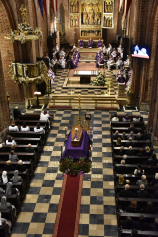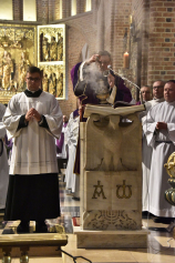 Homilista próbował także tchnąć ducha nadziei. Mówił, że z Wieczernika, którym dla śp. ks. Ryszarda była prastara poznańska katedra i w której otrzymał kapłańskie święcenia wychodzi się na trudy głoszenia Dobrej Nowiny, ale też jest wyjście na Kalwarię, na drogę krzyżową (bo częstokroć przełożeńskie obowiązki stają się takim krzyżem, a na pewno krzyżem jest choroba, której nasz zmarły Współbrat doświadczył w ostatnich tygodniach). Idzie się ku śmierci, kontynuował ks. Jerzy, ale też ku zmartwychwstaniu (i to podkreślał kilkukrotnie). Albowiem w Wieczerniku łamiemy Chleb żywota, który jest Ciałem naszego Pana i którego spożywanie jednoczy z Nim ściśle oraz daje życie wieczne: tu czerpał siły na duszpasterskie i przełożeńskie trudy zmarły kapłan i tu należy nam czerpać siłę na codzienne zmagania i właściwe realizowanie powołania życiowego. Więź z Chrystusem eucharystycznym to jeden z ‘duchowych akumulatorów’, drugim to synowskie oddanie się Maryi, Matce Bożej, które śp. ks. Ryszard wyniósł z domu rodzinnego. Maryja jako nasza Matka, Orędowniczka i Opiekunka, wskazywał kaznodzieja, towarzyszy i wspiera na drogach życia i powołania. Nie zabrakło w rozważaniu bardzo osobistych odniesień ze wspólnego duszpasterzowania na niemieckiej ziemi, toteż ks. Grynia zakończył je słowem podziękowania nie tylko za życie i kapłańską posługę, ale także za przyjaźń.