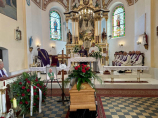 Następnie ks. Franciszek Śliwiński, miejscowy proboszcz odprawił nabożeństwo ostatniego pożegnania, po którym trumna z ciałem Zmarłego została wyprowadzona z kościoła na znajdujący się obok niego parafialny cmentarz. Ks. proboszcz poprowadził ostatnie modlitwy przy grobie i jeszcze raz podziękował za wspólnotę modlitwy.