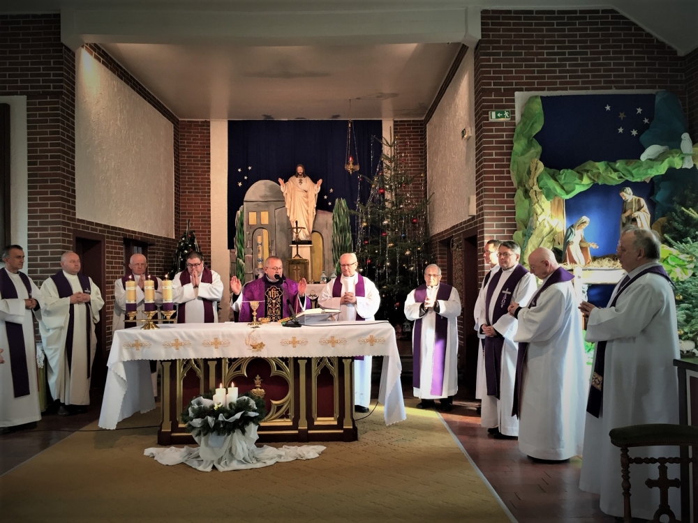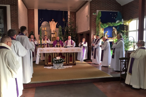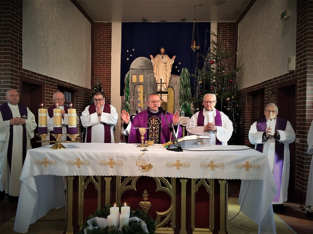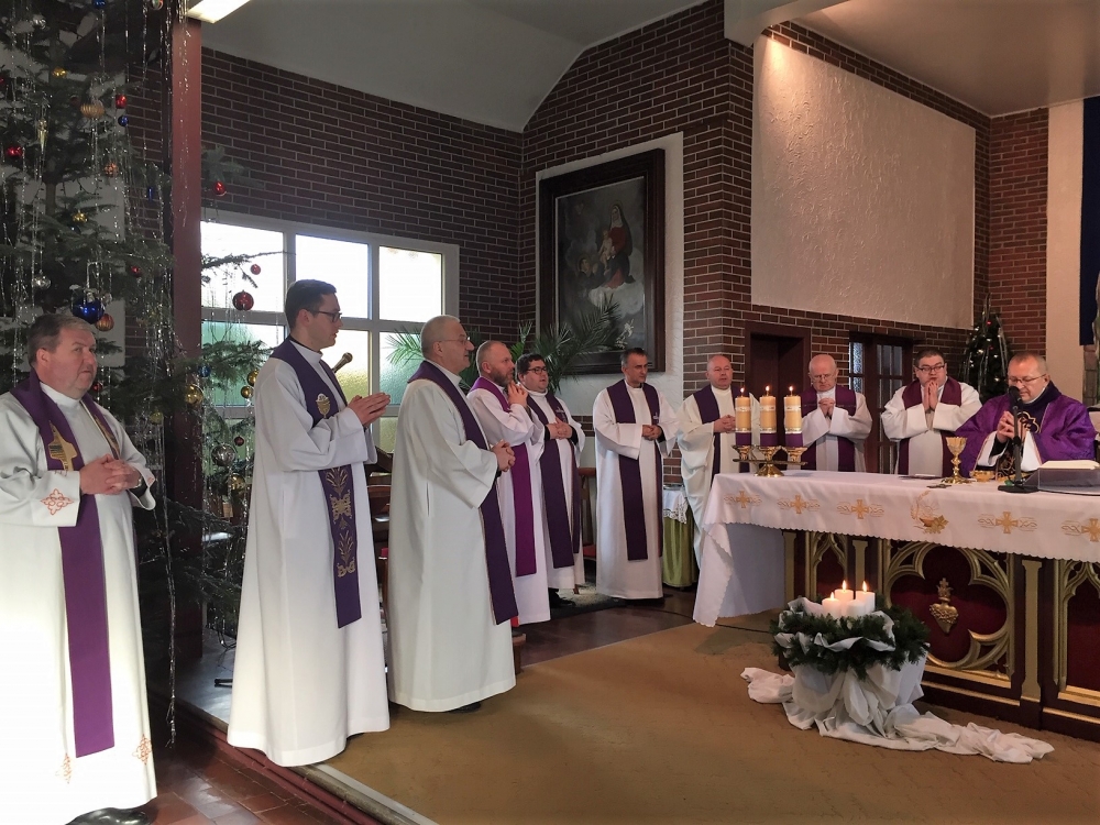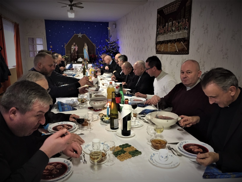 Ks. Tomasz poprowadził eucharystyczne nabożeństwo na początek dnia oraz wygłosił podczas Eucharystii kończącej modlitewną część spotkania homilię, w której zachęcał do naśladowania św. Józefa, który jest przykładem posłuszeństwa i zaufania Panu Bogu: po boskiej interwencji zaopiekował się Maryją i Jezusem (por. Ewangelia dnia: Mt 1,18-24) oraz wyprowadził w pole żołnierzy Heroda czyhających na życie Dziecięcia, mając do dyspozycji jedynie osiołka (por. Mt 2,13-18). Wspólnotowe spotkanie zakończył obiad w domu prowincjalnym sióstr sercanek w Fouquières lès Béthune, na którym nie zabrakło tradycyjnych, wigilijnych potraw i za który jesteśmy siostrom ogromnie wdzięczni. Braterska, świąteczna atmosfera udzieliła się wszystkim…