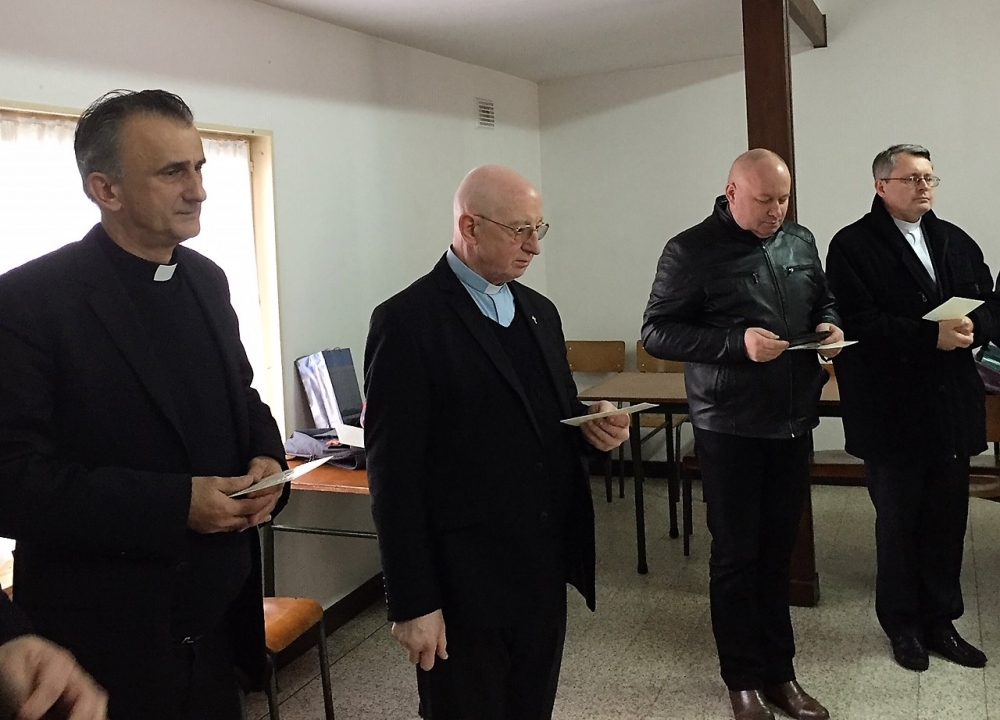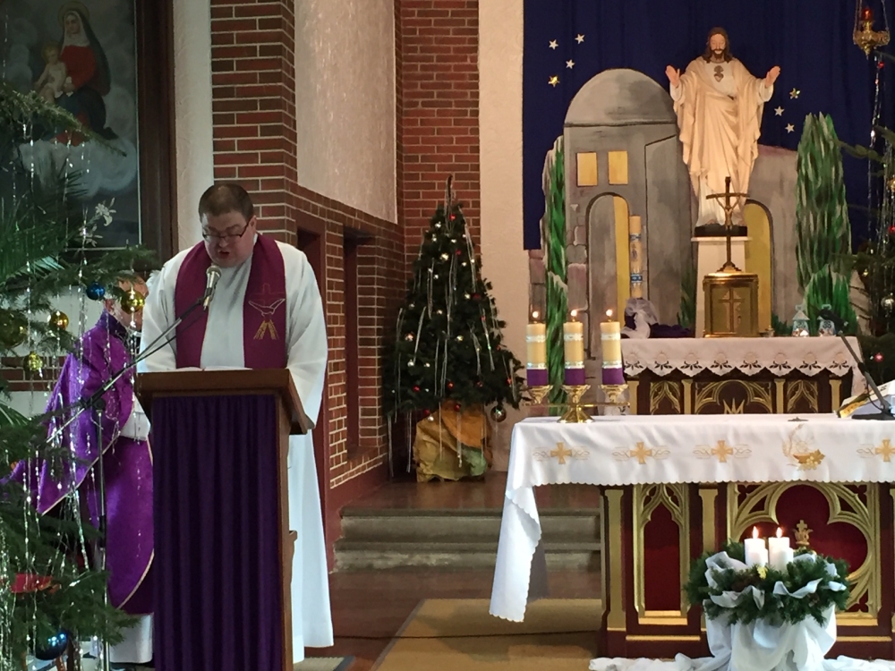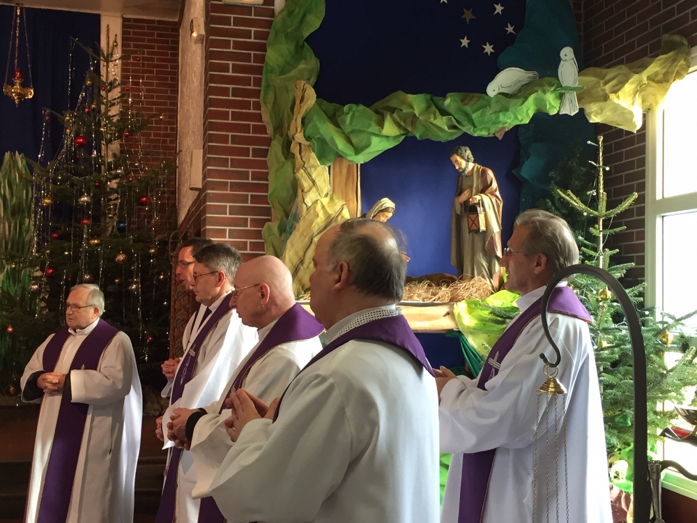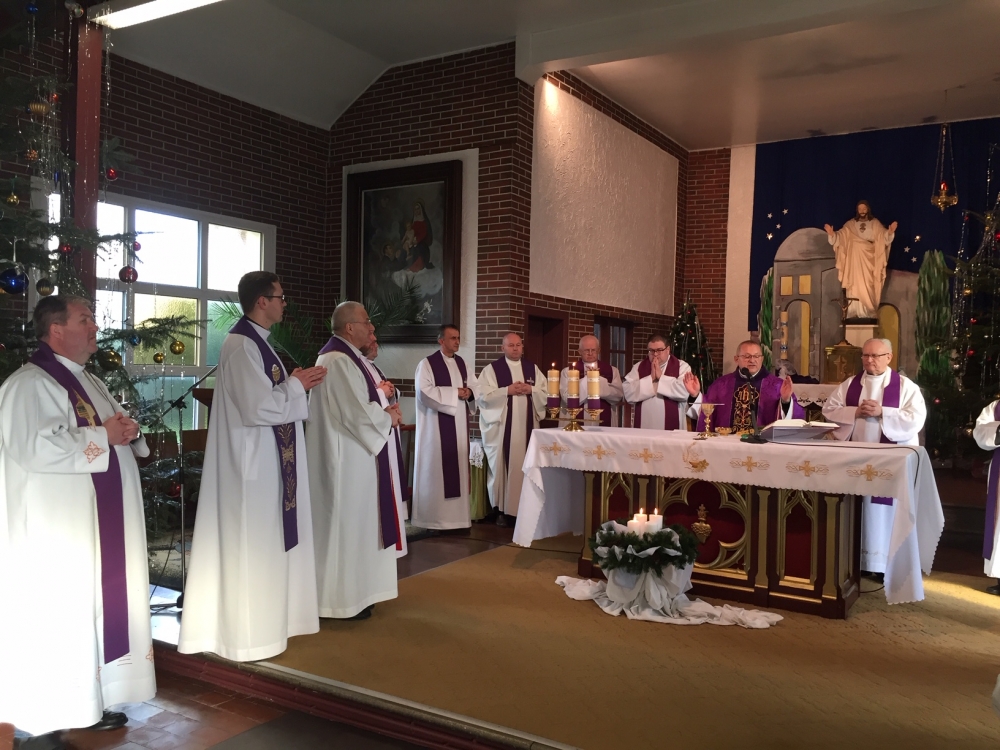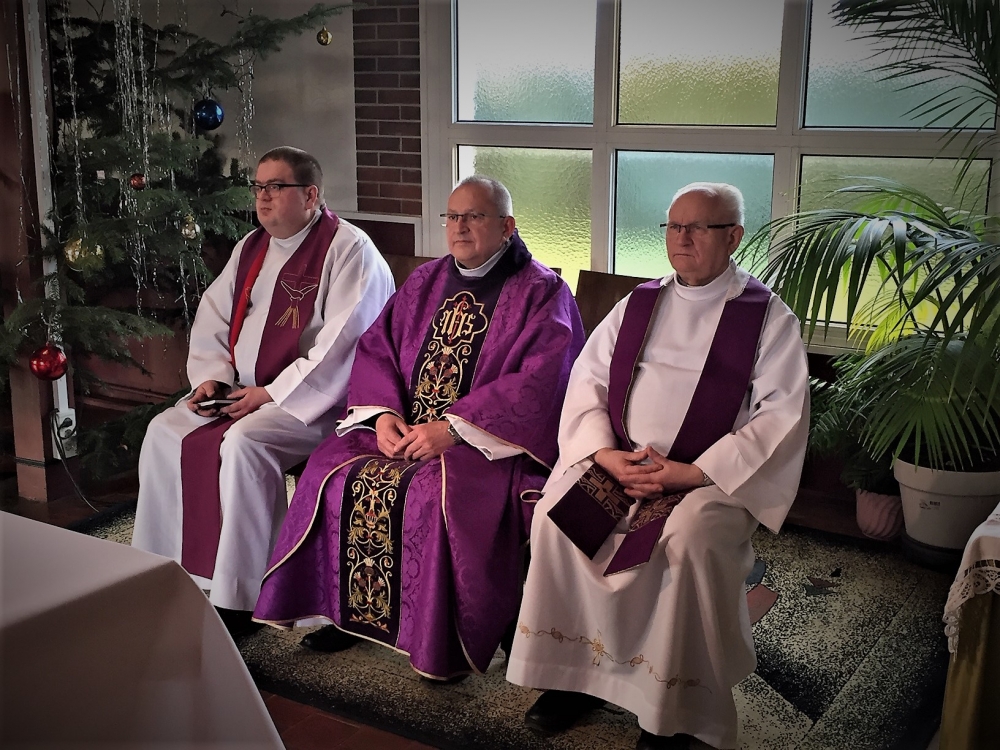 Ks. Tomasz poprowadził eucharystyczne nabożeństwo na początek dnia oraz wygłosił podczas Eucharystii kończącej modlitewną część spotkania homilię, w której zachęcał do naśladowania św. Józefa, który jest przykładem posłuszeństwa i zaufania Panu Bogu: po boskiej interwencji zaopiekował się Maryją i Jezusem (por. Ewangelia dnia: Mt 1,18-24) oraz wyprowadził w pole żołnierzy Heroda czyhających na życie Dziecięcia, mając do dyspozycji jedynie osiołka (por. Mt 2,13-18). Wspólnotowe spotkanie zakończył obiad w domu prowincjalnym sióstr sercanek w Fouquières lès Béthune, na którym nie zabrakło tradycyjnych, wigilijnych potraw i za który jesteśmy siostrom ogromnie wdzięczni. Braterska, świąteczna atmosfera udzieliła się wszystkim…